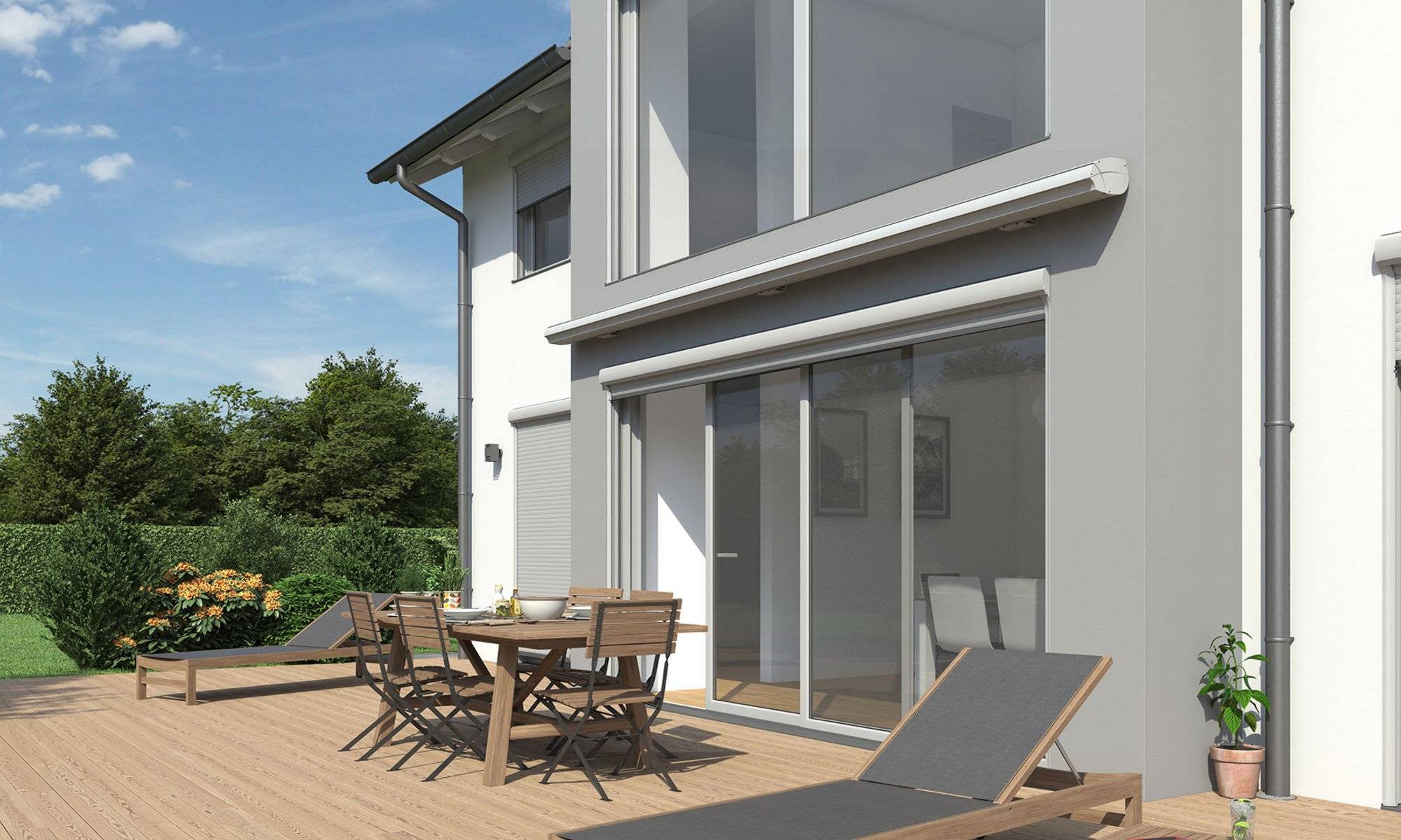 Prolongement extérieur de vos protections solaires intérieures, ce store fait efficacement écran aux rayons du soleil et transforme votre terrasse en un lieu ombragé et frais, sans dissipation de la chaleur. Ce qui réduit sensiblement vos besoins en climatisation.